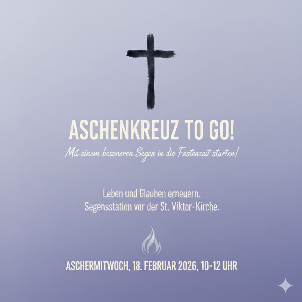 Am Aschermittwoch wird es neben den Wortgottesdiensten, in denen die Auflegung des Aschekreuzes stattfindet, zwischen 10 und 12 Uhr auf dem Marktplatz vor der St. Viktor Kirche auch das Angebot geben, sich zu Beginn der vorösterlichen Fasten- und Bußzeit mit dem Aschenkreuz bezeichnen zu lassen.