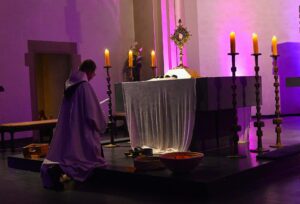 Der Abend des Friedens bietet also viel Zeit zum Gebet und dem Dialog mit Gott. Der Start ist klassisch mit einem Wortgottesdienst, der dann aber mündet in eine offene Form, in der jede und jeder verschiedene Angebote wahrnehmen kann. Da das Allerheiligste ausgesetzt sein wird, sind alle eingeladen, sich bei größtmöglicher Stille im Kirchenraum von der Anwesenheit des Herrn berühren zu lassen.