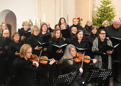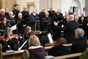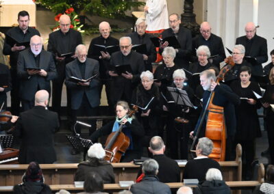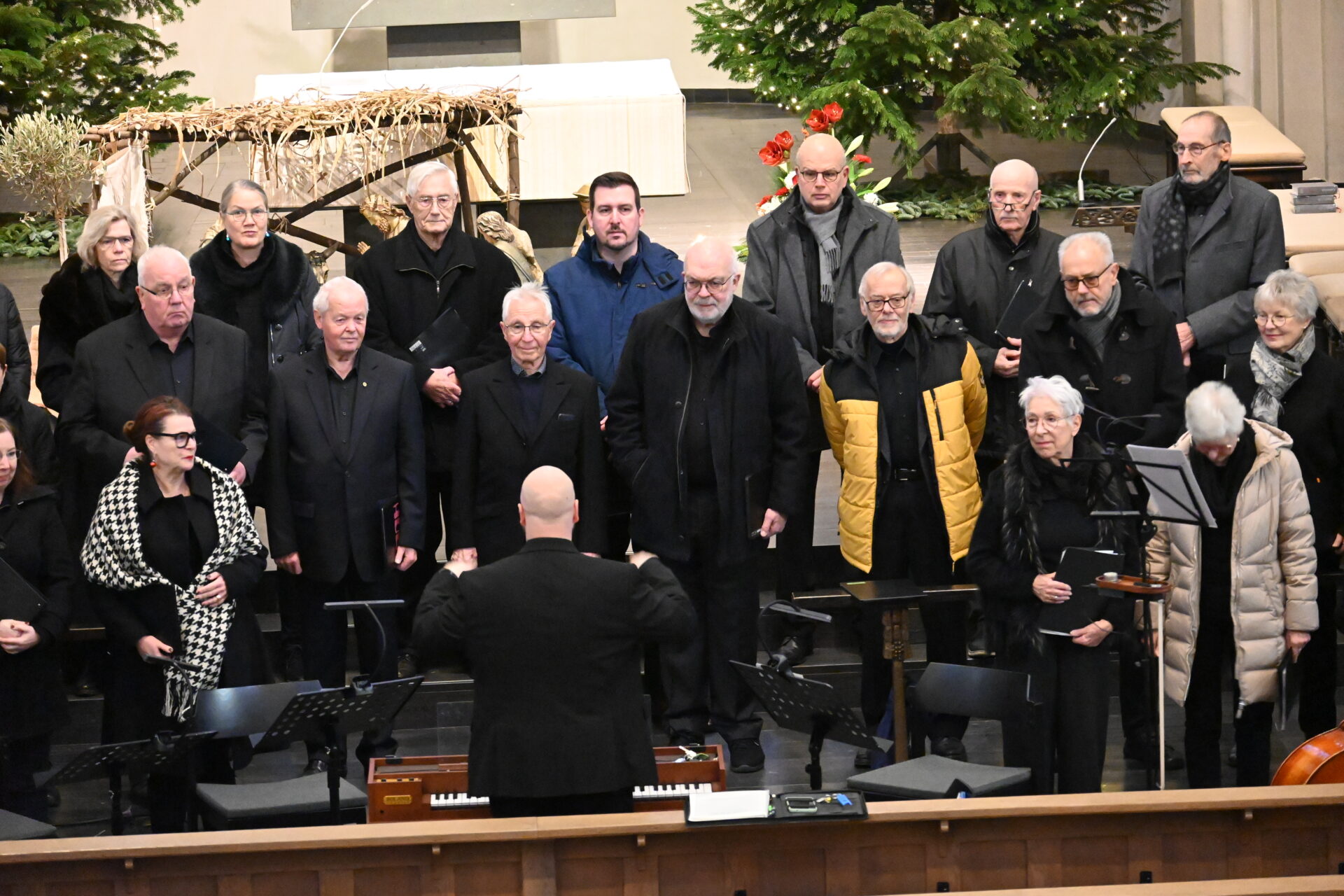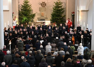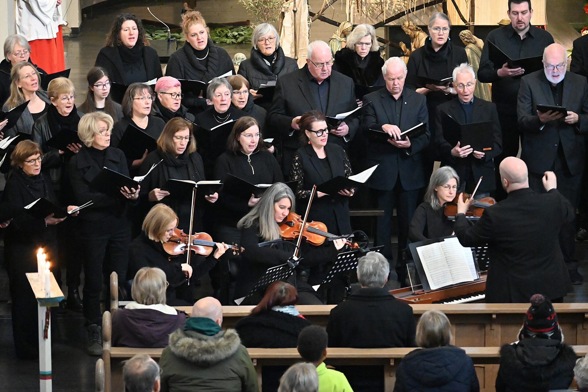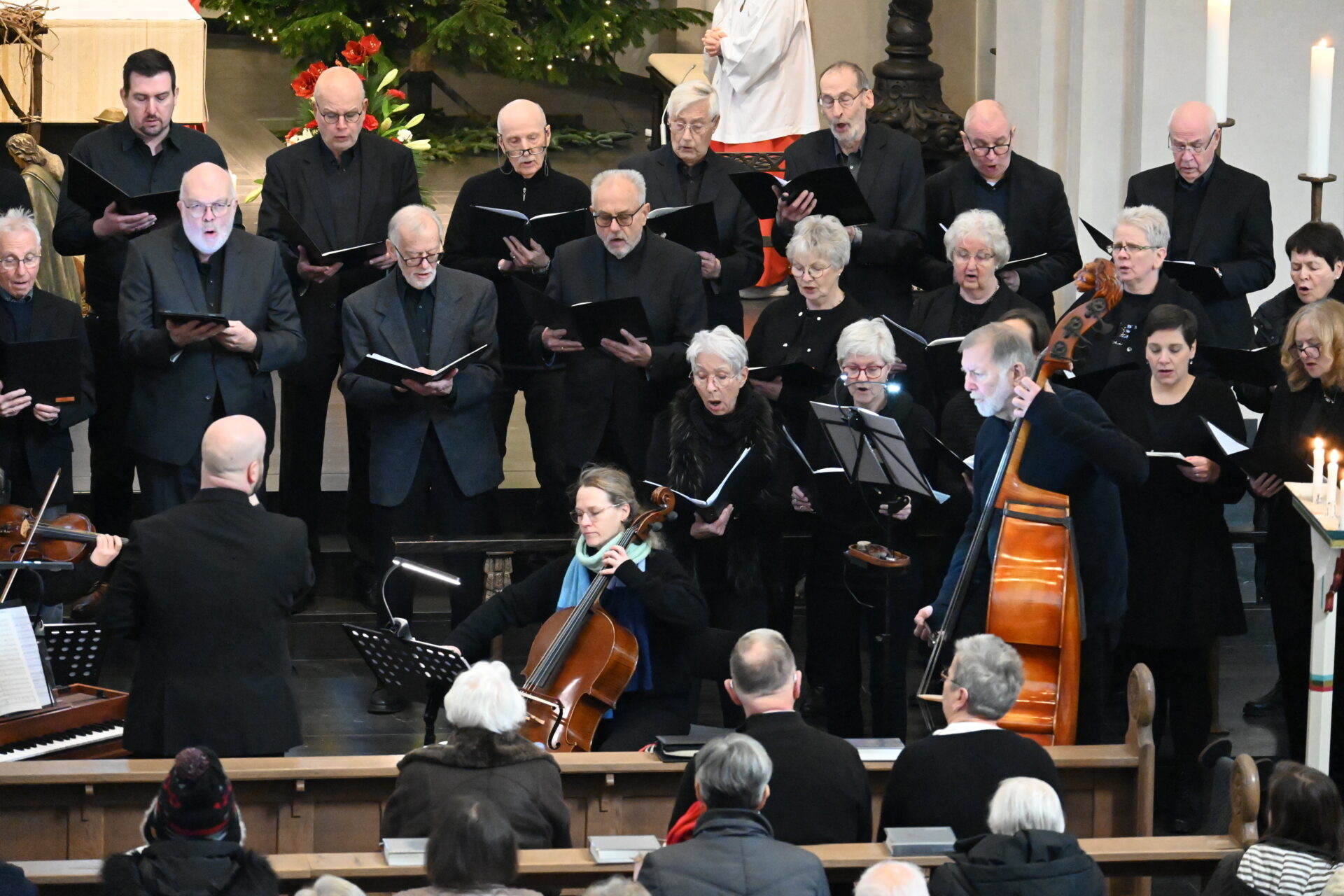 Ein kirchenmusikalisches Ereignis, das rund 300 Gottesdienstbesucher am zweiten Weihnachtstag in der Heiligen Messe in St. Marien gemeinsam erlebten und feierten: Unter der musikalischen Leitung von Dr. Andreas Feilen sang ein 60köpfiger Projektchor, unterstützt von fünf professionellen Streichern (zwei Violinen, Viola, Cello, Bass), die 1877 geschriebene Messe brève no. 7 des französischen Opern- und Kirchenmusik-Komponisten Charles Gounod.