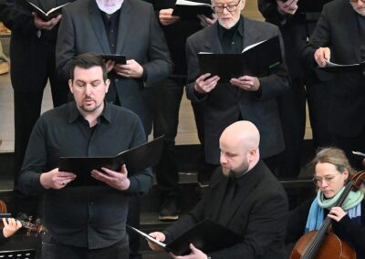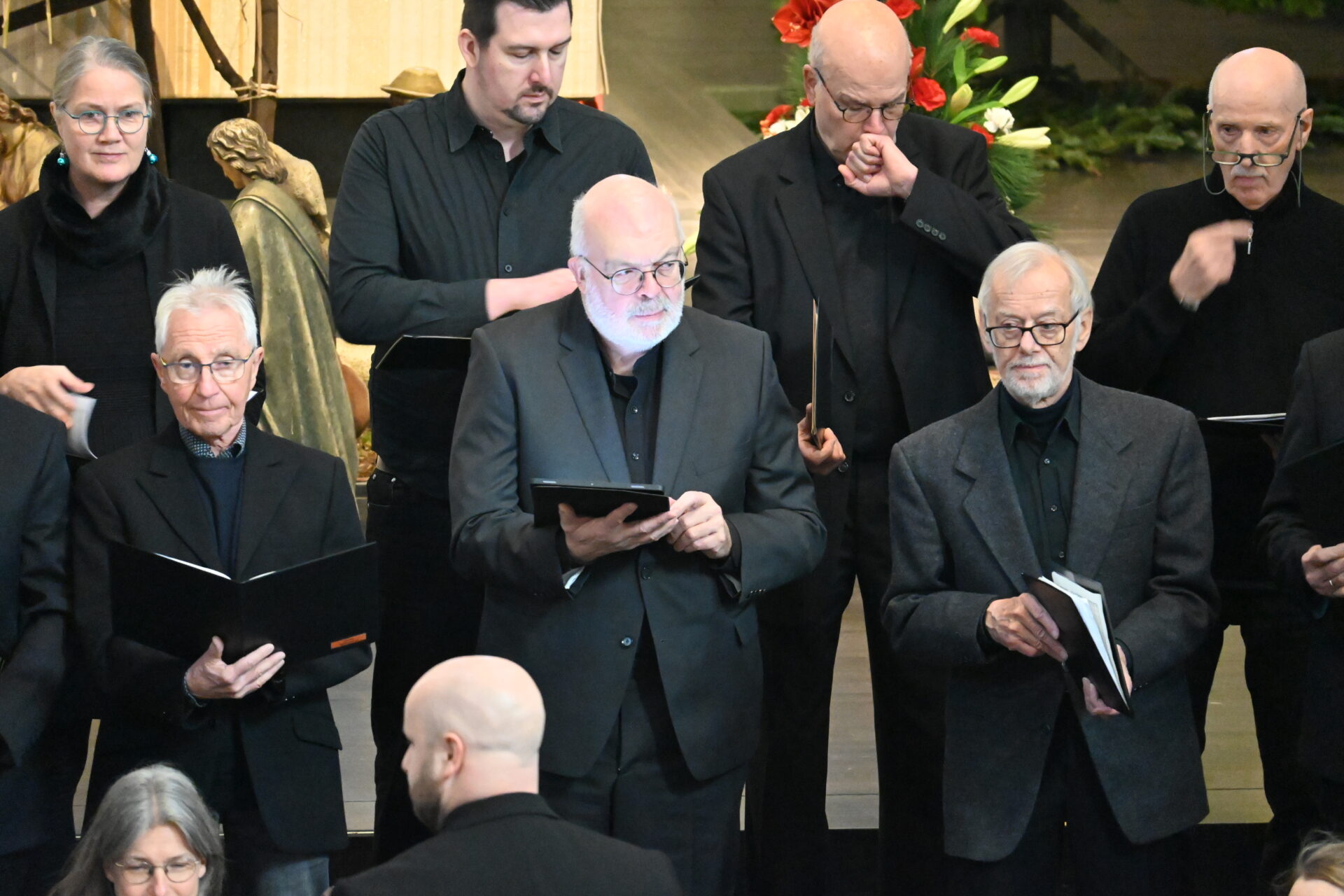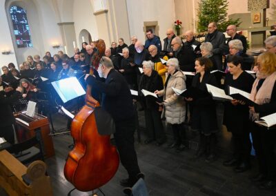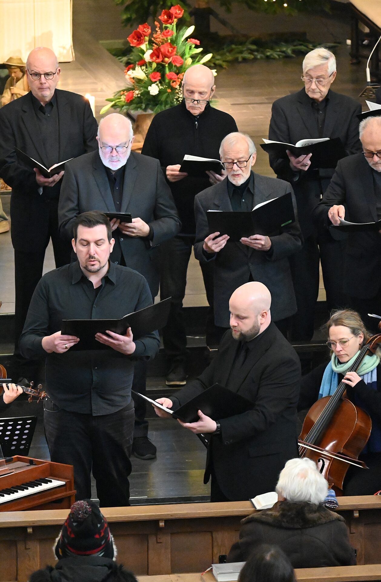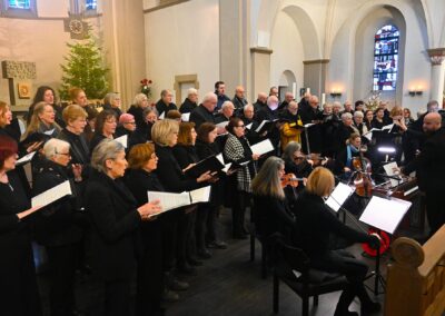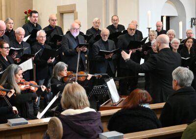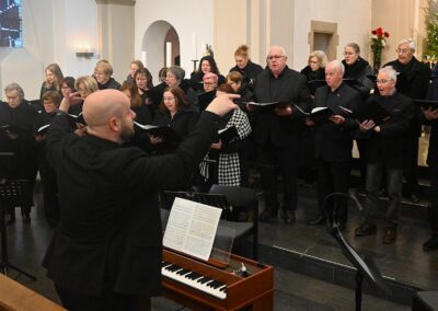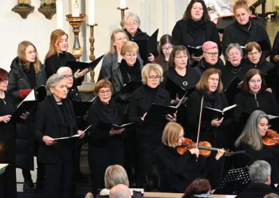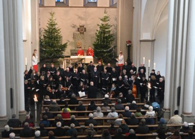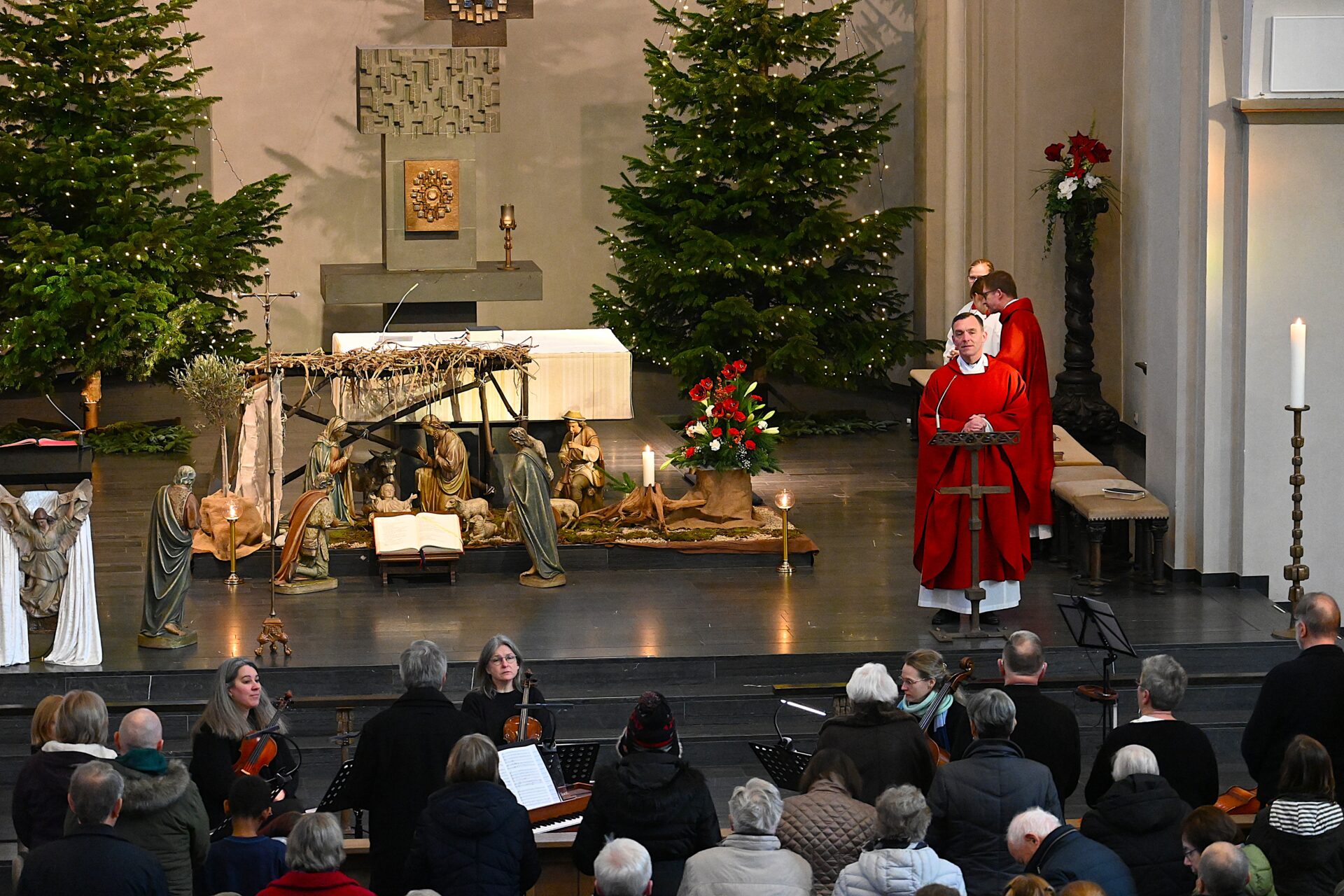 Ein kirchenmusikalisches Ereignis, das rund 300 Gottesdienstbesucher am zweiten Weihnachtstag in der Heiligen Messe in St. Marien gemeinsam erlebten und feierten: Unter der musikalischen Leitung von Dr. Andreas Feilen sang ein 60köpfiger Projektchor, unterstützt von fünf professionellen Streichern (zwei Violinen, Viola, Cello, Bass), die 1877 geschriebene Messe brève no. 7 des französischen Opern- und Kirchenmusik-Komponisten Charles Gounod.