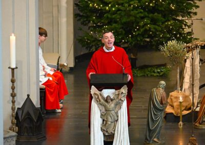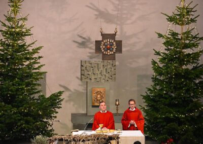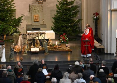 Bestaunt wurde von vielen Messe-Besuchern auch die neue „alte“ Krippe, die das Pastoralteam der Gemeinde erstmals direkt vor den Altar gebaut hatte; unter Zuhilfenahme der schönen, 120 Jahre alten Gipsfiguren aus dem kaum mehr zugänglichen Turmmuseum.