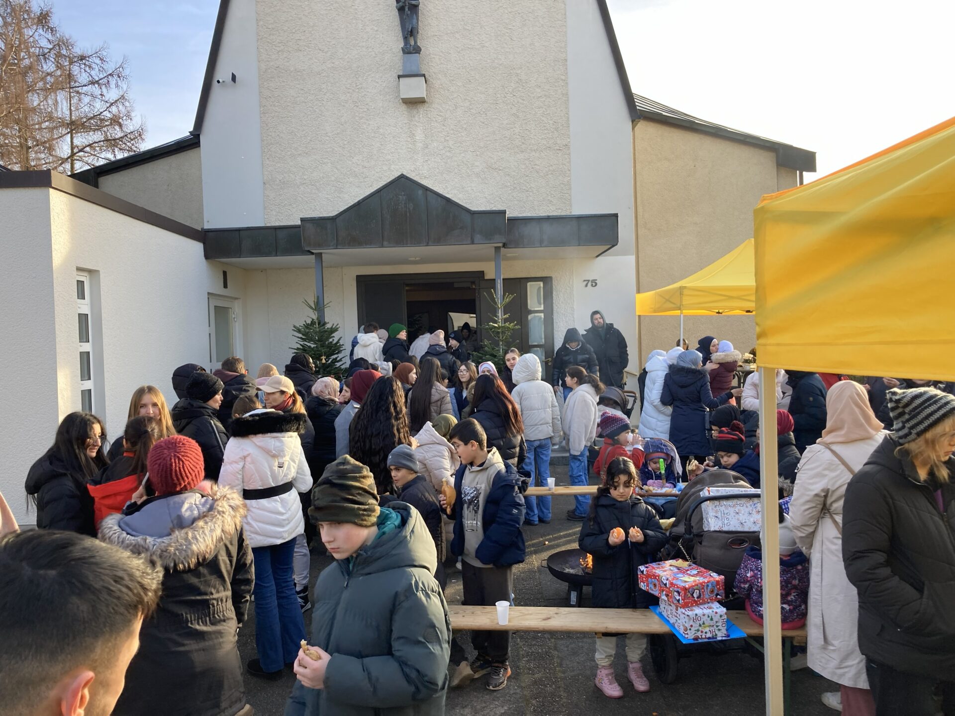 Der mit Fördermitteln aus dem Flüchtlingsfonds des Erzbistums geförderte traditionelle Weihnachtstreff auf dem Kirchplatz von St. Christophorus war wieder ein BesucherInnen-Magnet. Fast 400 schutzsuchende Männer, Frauen und Kinder sowie ihre Paten und BetreuerInnen sowie BesucherInnen aus der Gemeinde hatten die Einladung der Gemeindegruppe Asyl im Pfarrbezirk St. Christophorus Holzen angenommen. Bei Sonnenschein, aber frostigen Temperaturen konnten sich alle bei Kaffee, Tee, Gebäck, Würstchen vom Grill und Grillkäse näherkommen. Im Vorfeld hatten bereits alle weiterführenden Schulen in Schwerte Schuhkartons mit Geschenken für die Kinder gesammelt. Die Beteiligung der SchülerInnen, der Eltern und der Lehrkräfte war wieder überwältigend – tatsächlich konnten wieder alle Kinder aus den geflüchteten Familien ein Geschenk bekommen. Die Gemeindegruppe Asyl dankt dem Ruhrtalgymnasium, dem Friedrich-Bährens-Gymnasium, der Gesamtschule Gänsewinkel und der Theodor-Fleitmann-Gesamtschule. Revanchiert wurde sich mit Gutscheinen einer Schwerter Eisdiele und eines Dönergrills. Das Treffen war auch ein kleines Dankeschön für die Paten und BetreuerInnen, die sich ehrenamtlich um die nach Schwrte gekommenen Menschen kümmern. Ein sehr gelungenes Beispiel für funktionierende Integration!