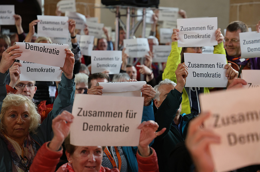 Das Beitragsfoto zeigt eine Szene vom Katholikentag in Erfurt, freigegeben von der Pressestelle des Katholikentages.