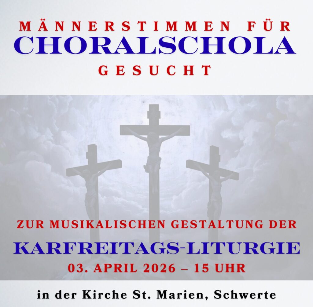 Die Karfreitagsliturgie in der Marienkirche in Schwerte soll in diesem Jahr besonders gestaltet werden. Eine Projekt-Choralschola wird gregorianische Gesänge darbieten.