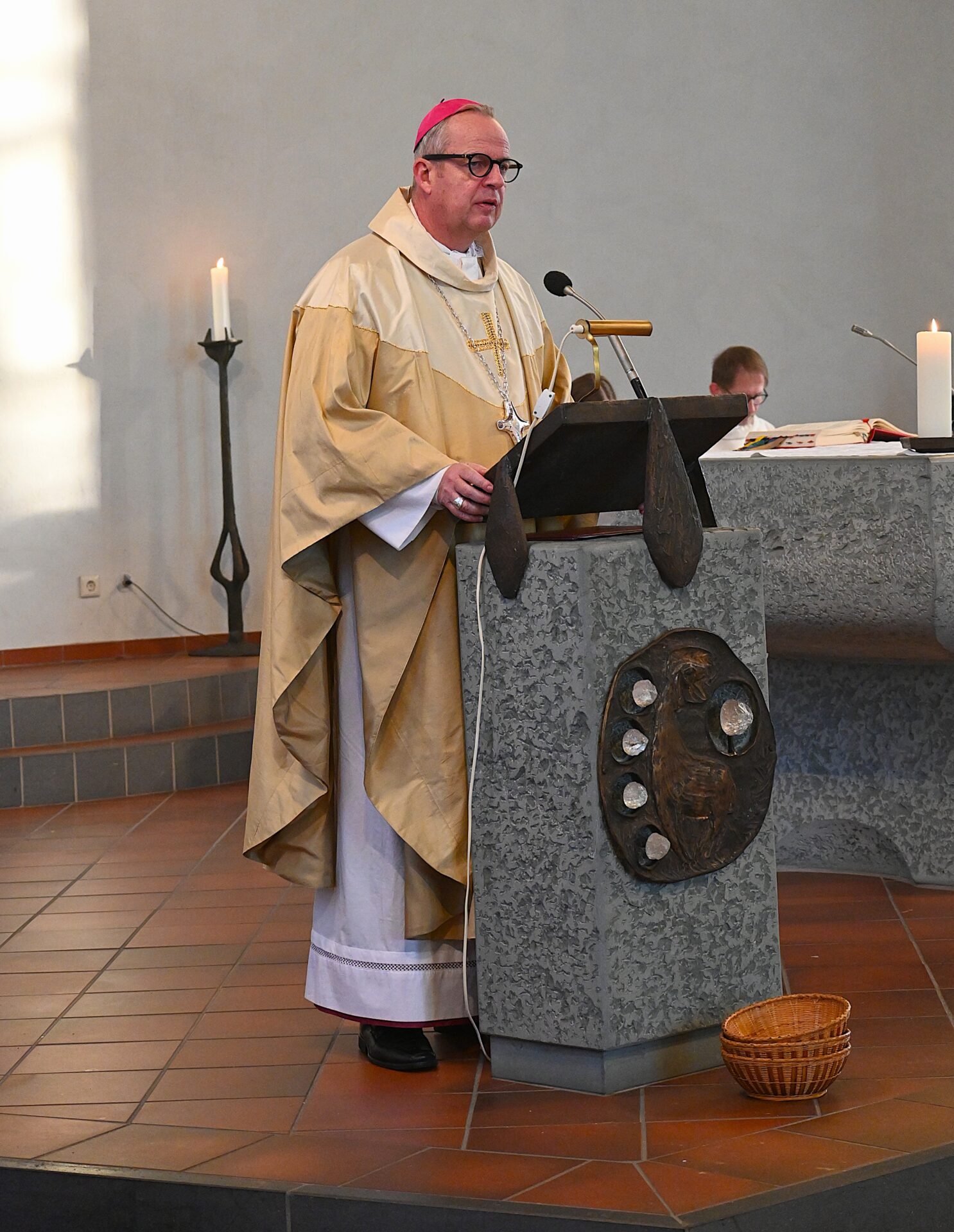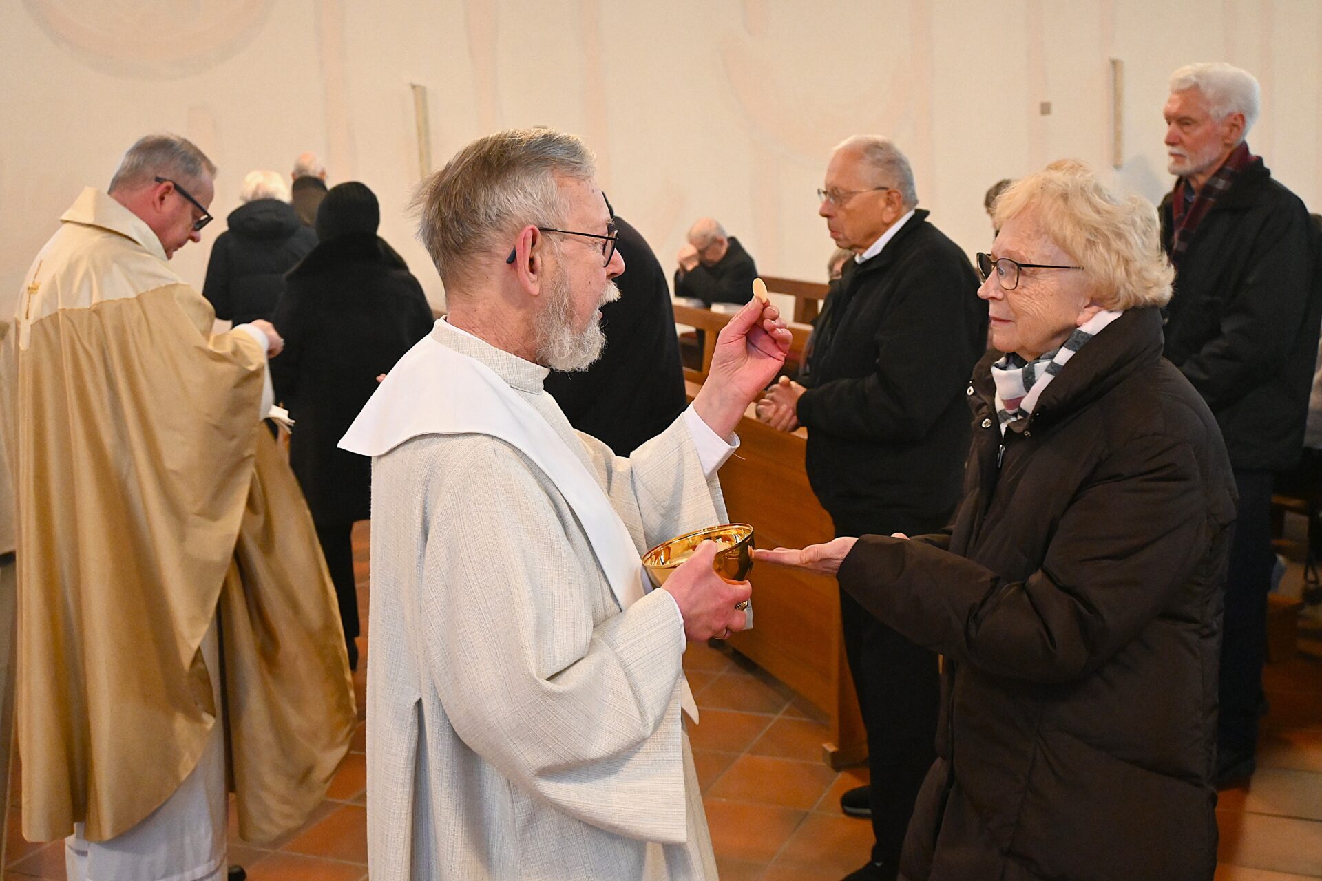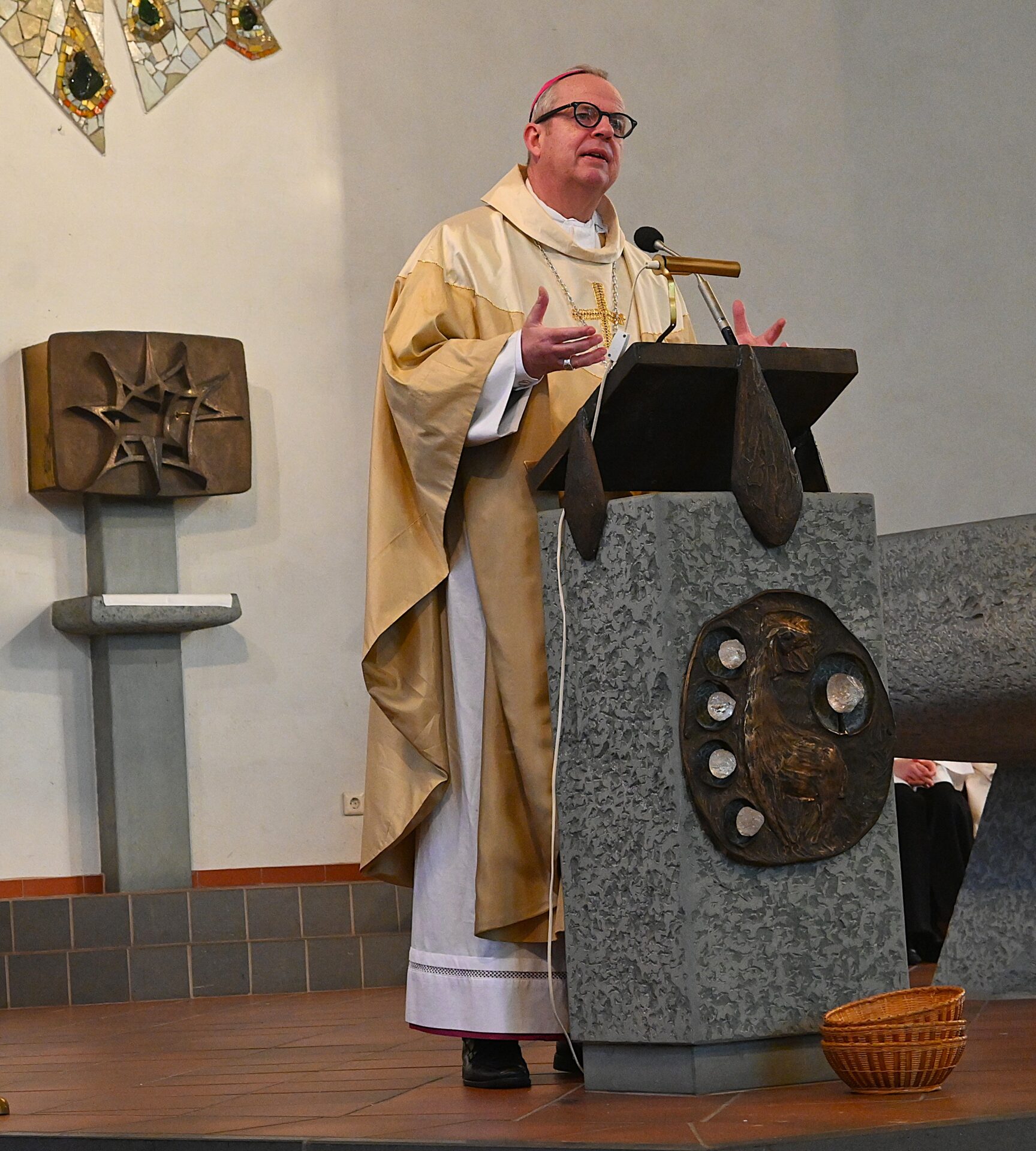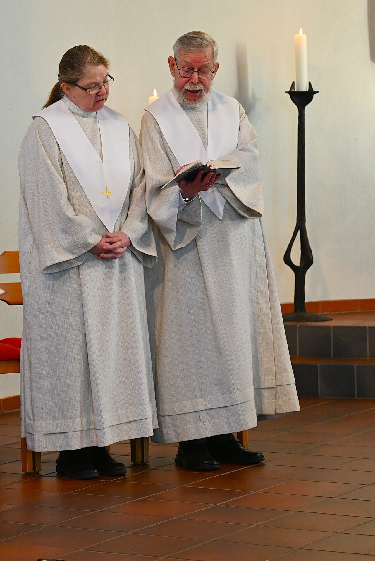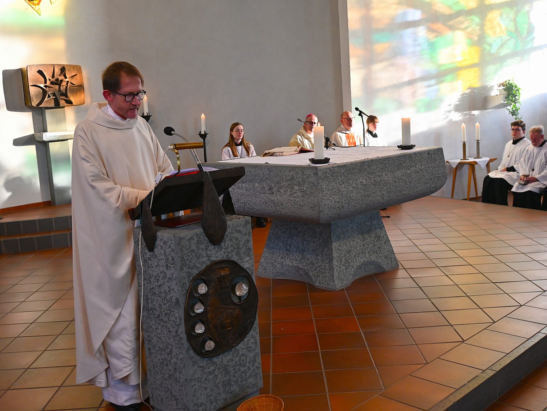 Pastor Christian Laubhold und Pfarrer Guido Bartels als Konzelebrant feierten den liturgischen Teil dieser Messe, die die fantastische Akustik des Kirchengebäudes an der Goethestraße voll zur Geltung brachte. Kirchenmusiker Andreas Feilen musste zwischendurch vom Dirigat vor dem Altar immer wieder zur Empore hinauf sprinten, wo er die Messe an der großen Seiffert-Orgel mit ganzem Einsatz begleitete.