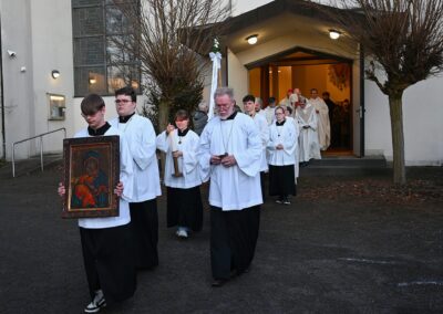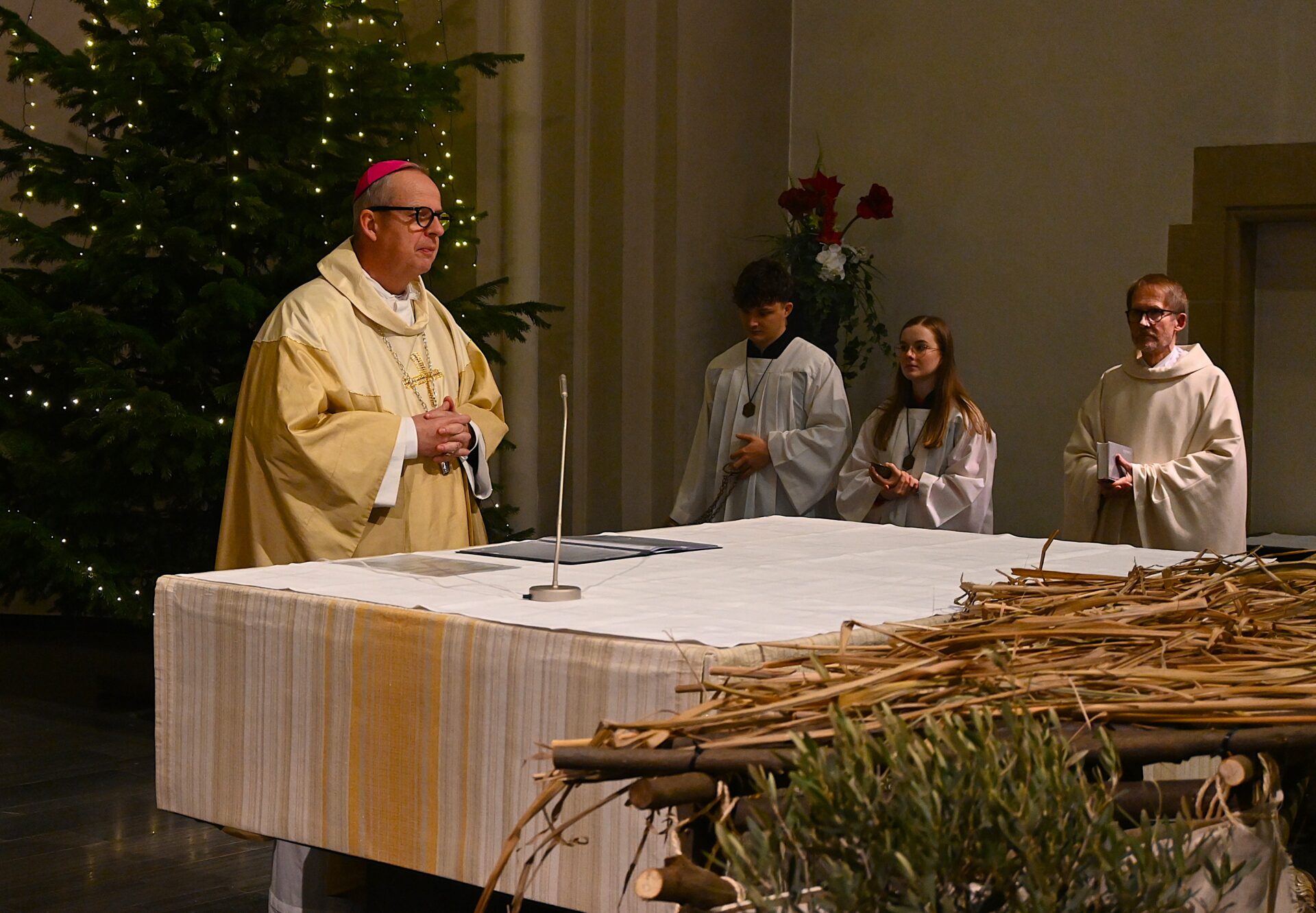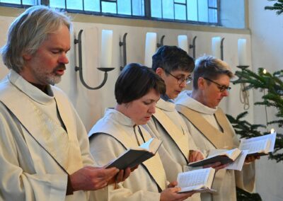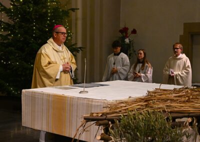 Bestaunt wurde von vielen Messe-Besuchern auch die neue „alte“ Krippe, die das Pastoralteam der Gemeinde erstmals direkt vor den Altar gebaut hatte; unter Zuhilfenahme der schönen, 120 Jahre alten Gipsfiguren aus dem kaum mehr zugänglichen Turmmuseum.
