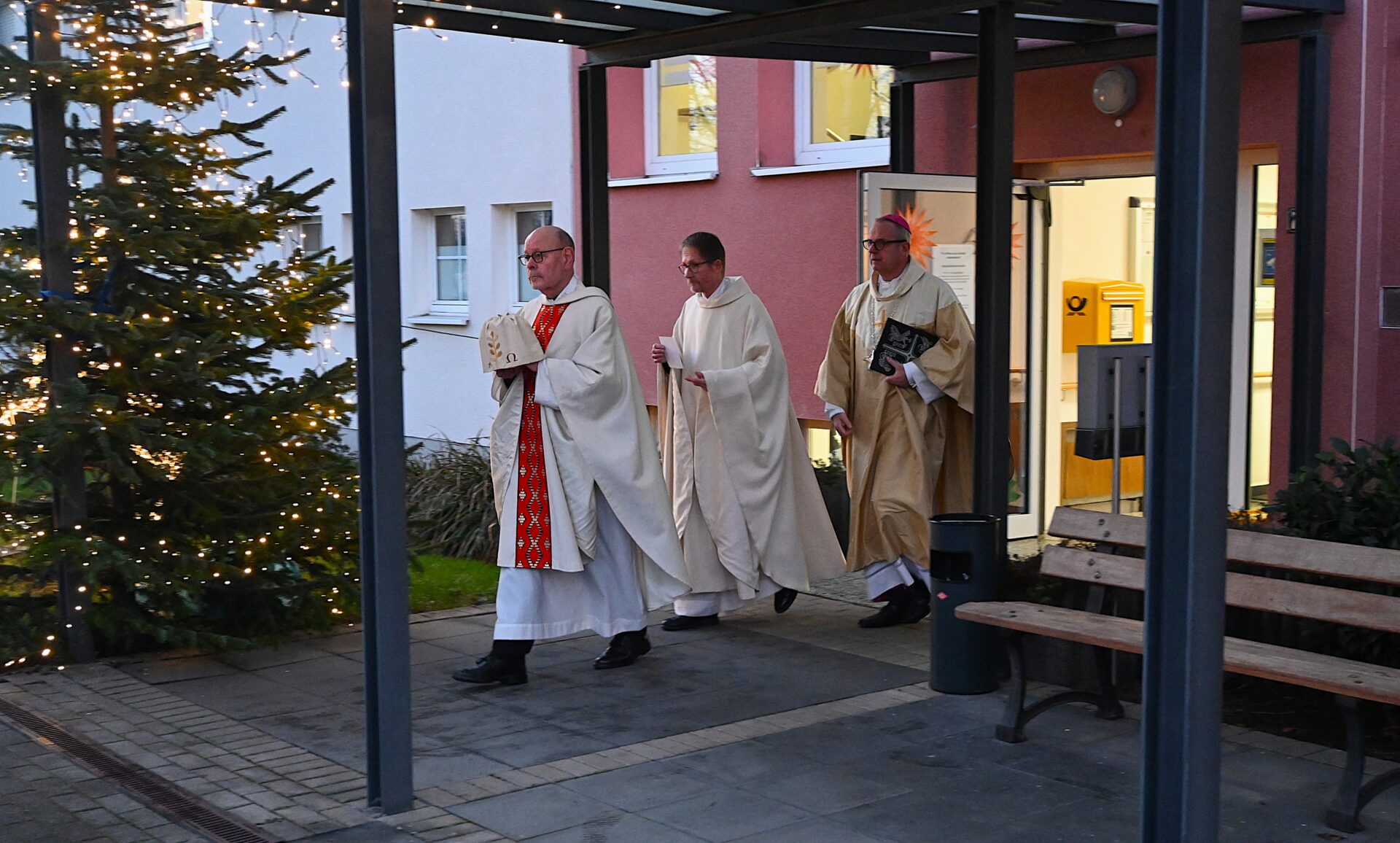 Die zweiten und vierten Klassen der Friedrich-Kayser-Schule besuchten das „Haus am Stadtpark“. Gemeinsam gingen sie durch alle vier Flure des Hauses und überreichten jeder Bewohnerin und jedem Bewohner einen Holz-Weihnachtsbaum.